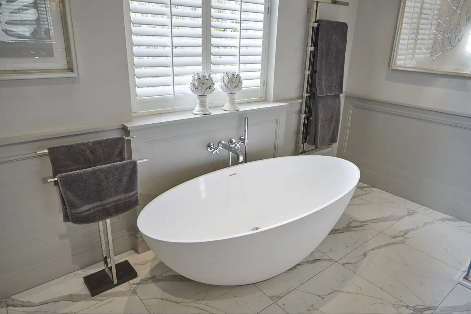 Using blues as the principal colour theme throughout the project and some of the Client’s existing artwork and furniture we were able to create rich textural layers giving a feeling of warmth and luxury.